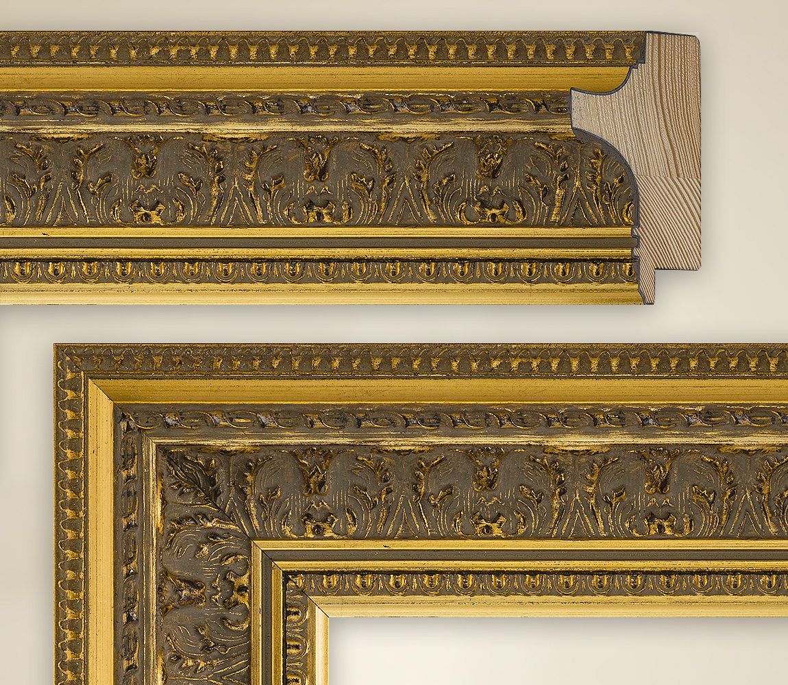 | Malerirammen Nelly er imponerende i alle bildegallerier, men også i alle private samlere som setter pris på sublime rammer for sine kunsttrykk. Med denne modellen presenterer Van Gogh-rammeserien en annen gullramme som designerne har laget til et fantastisk stykke i farge, form og design med forskjellige striper. På en total bredde på 79 mm vises rammer her, noen ganger med, noen ganger uten ornamenter, men alltid smart koordinert og ordnet i en bemerkelsesverdig rekkefølge. På ytterkanten begynner Nelly med den første smale dekorative stripen, som viser små trekantede kjettingledd på en mørk brun bakgrunn. En gullfarget fordypning fører veien til den høyeste delen av rammen, som glir inn i rommet som en firkantet tunge med 43 mm. Også her kommer gullelementer på brunt til sin rett som et ornament, før den store hovedgrensen skyver seg tilbake mot veggen. Den mørkebrune dominerer her, slik at de gyldne strukturene ser veldig filigran ut. Gull, brunt, gull er navnene på de neste smale stripene, og blir ledsaget av en annen dekorativ kant før en endelig gullstrimmel danner den kollektive konklusjonen. Samlet sett dominerer den mørkebrune, som sammen med det blanke gullet representerer et utmerket ensemble. |