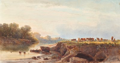Flusslandschaft mit Kuhherde
