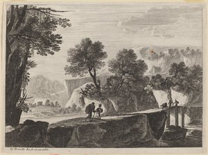 Landschap met wandelaars en figu...