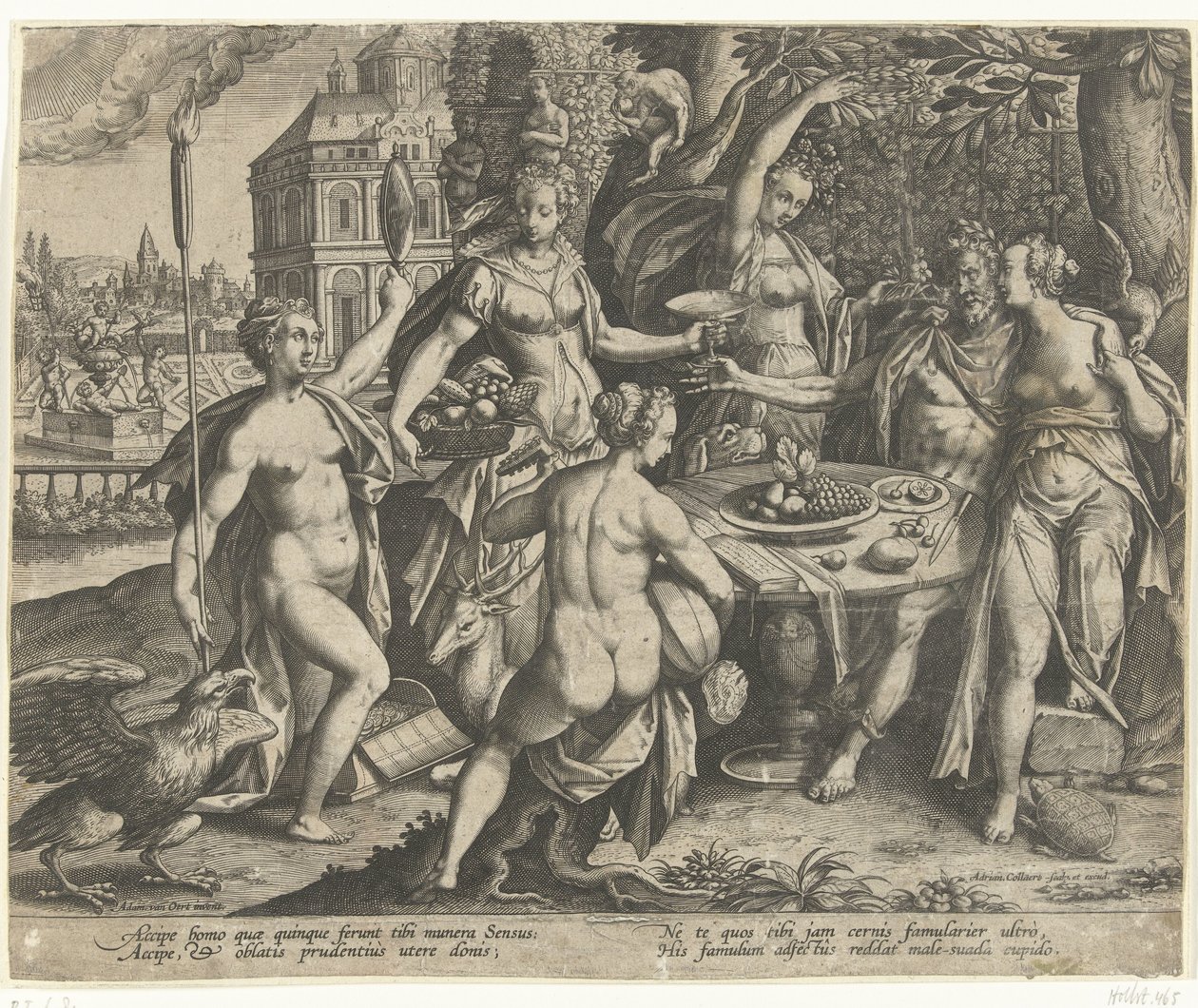 Allegori over de fem sansene(Allegorie van de vijf zintuigen)Adriaen Collaert(print maker),Adam van Noort(after design by),Adriaen Collaert(publisher) |