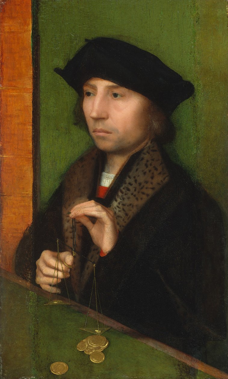 Mann som veier gull, ca. 1515-20.(Man Weighing Gold, ca. 1515-20. )Adriaen Isenbrandt |