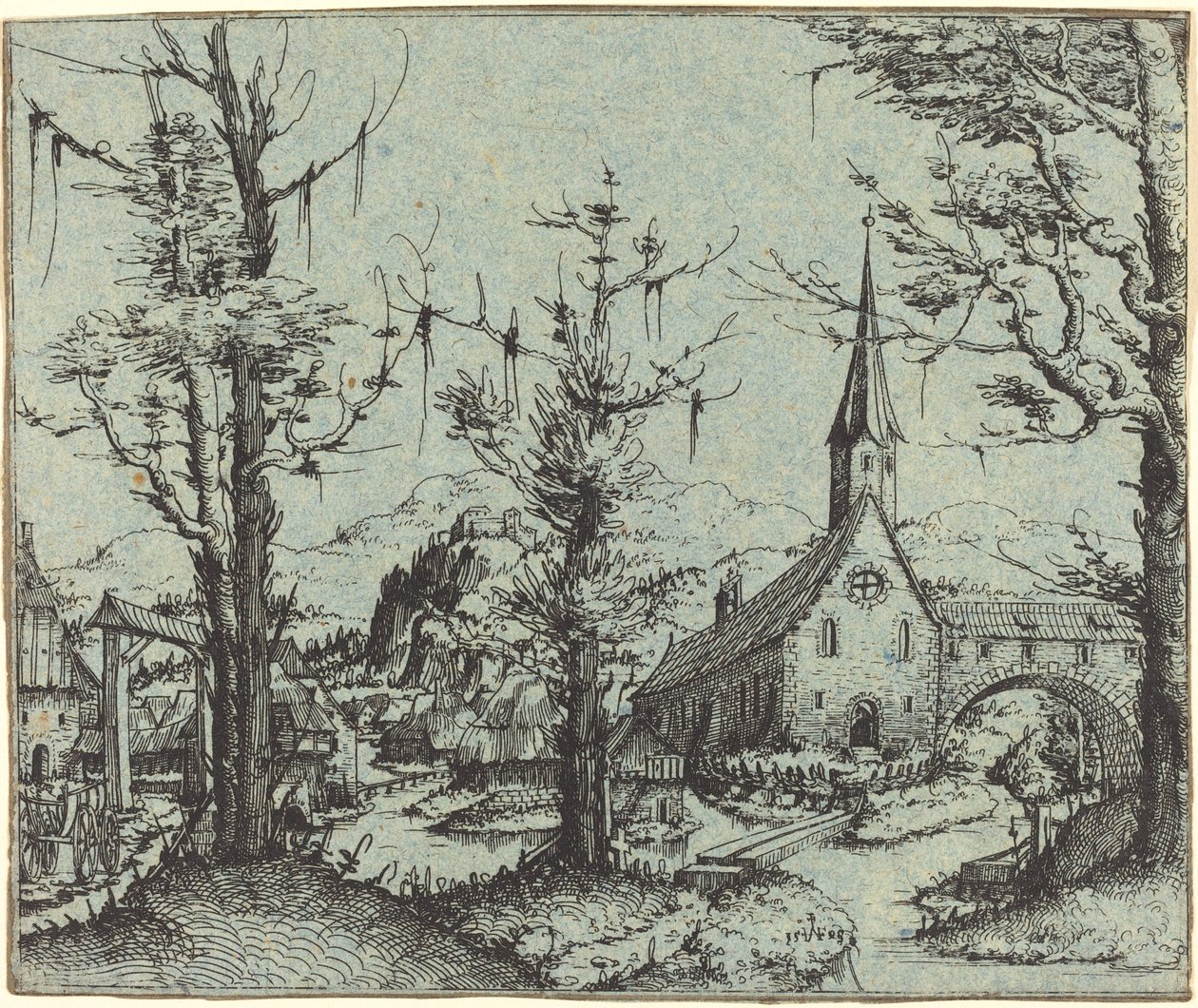 Landskap med en landsbykirke(Landscape with a Village Church)Augustin Hirschvogel |