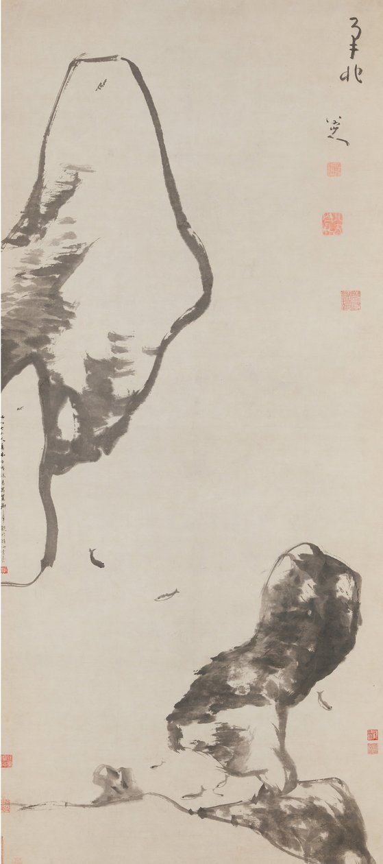 Fisk og steiner, datert 1699.(Fish and rocks, dated 1699. )Bada Shanren |