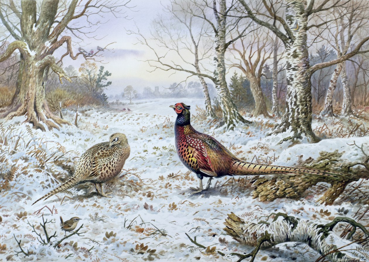 Et par fasaner med en Wren(Pair of Pheasants with a Wren)Carl Donner |