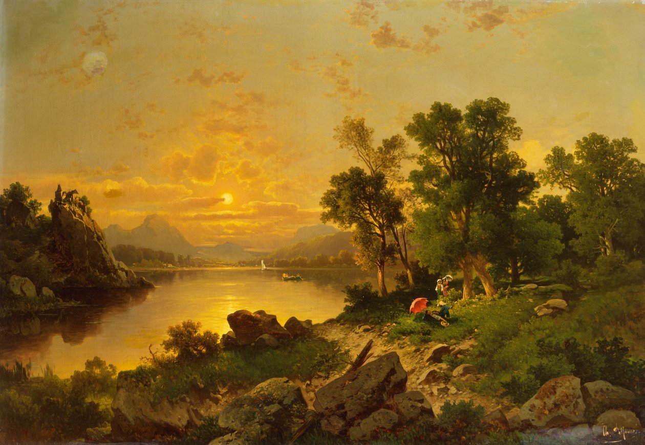 Et omfattende innsjølandskap (olje på lerret)(An Extensive Lake Landscape (oil on canvas))Charles Delfauer |
