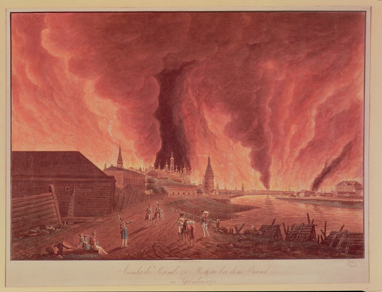 Utsikt over Kreml, under Moskva-brannen i september 1812, gravert av Schmidt(View of the Kremlin, during the Moscow Fire of September 1812, engraved by Schmidt )Christian Johann Oldendorp |