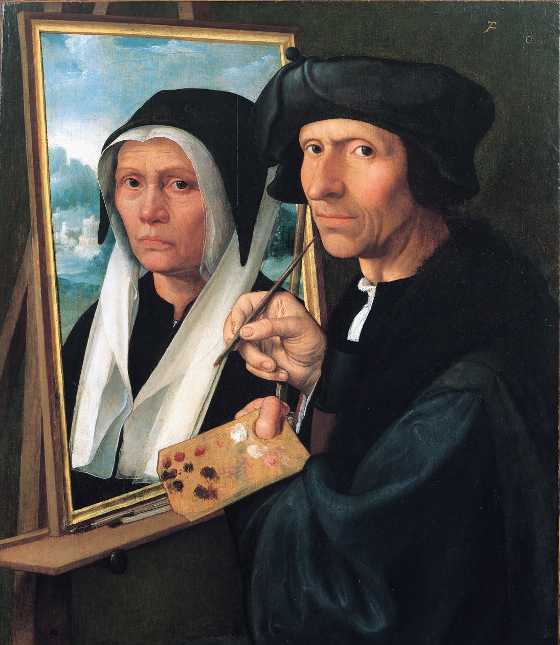 Jacob Cornelisz. van Oostsanen maler konens portrett.(Jacob Cornelisz. van Oostsanen painting his wife’s portrait.)Dirck Jacobsz. |