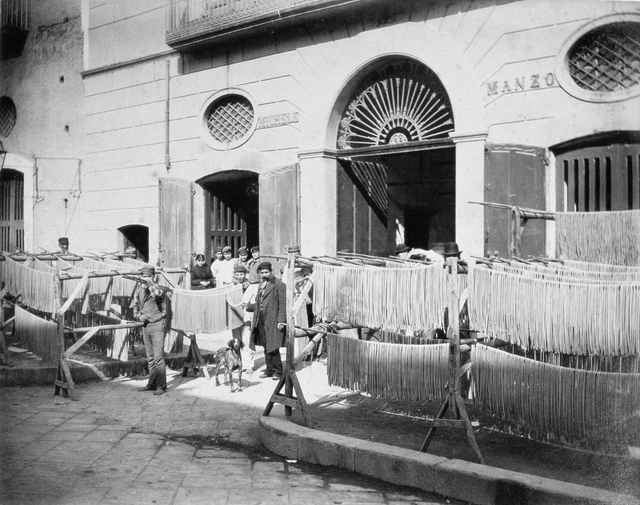 Pasta tørker i gatene, Napoli, 1897(Pasta drying in the streets, Naples, 1897 )English Photographer |