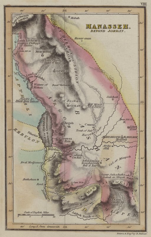 Manasse, bortenfor Jordan (farget gravering)(Manasseh, beyond Jordan (coloured engraving))English School |