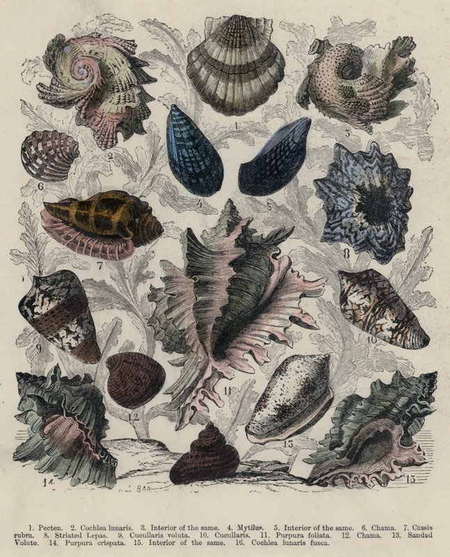 Skjell (farget gravering)(Shells (coloured engraving))English School |