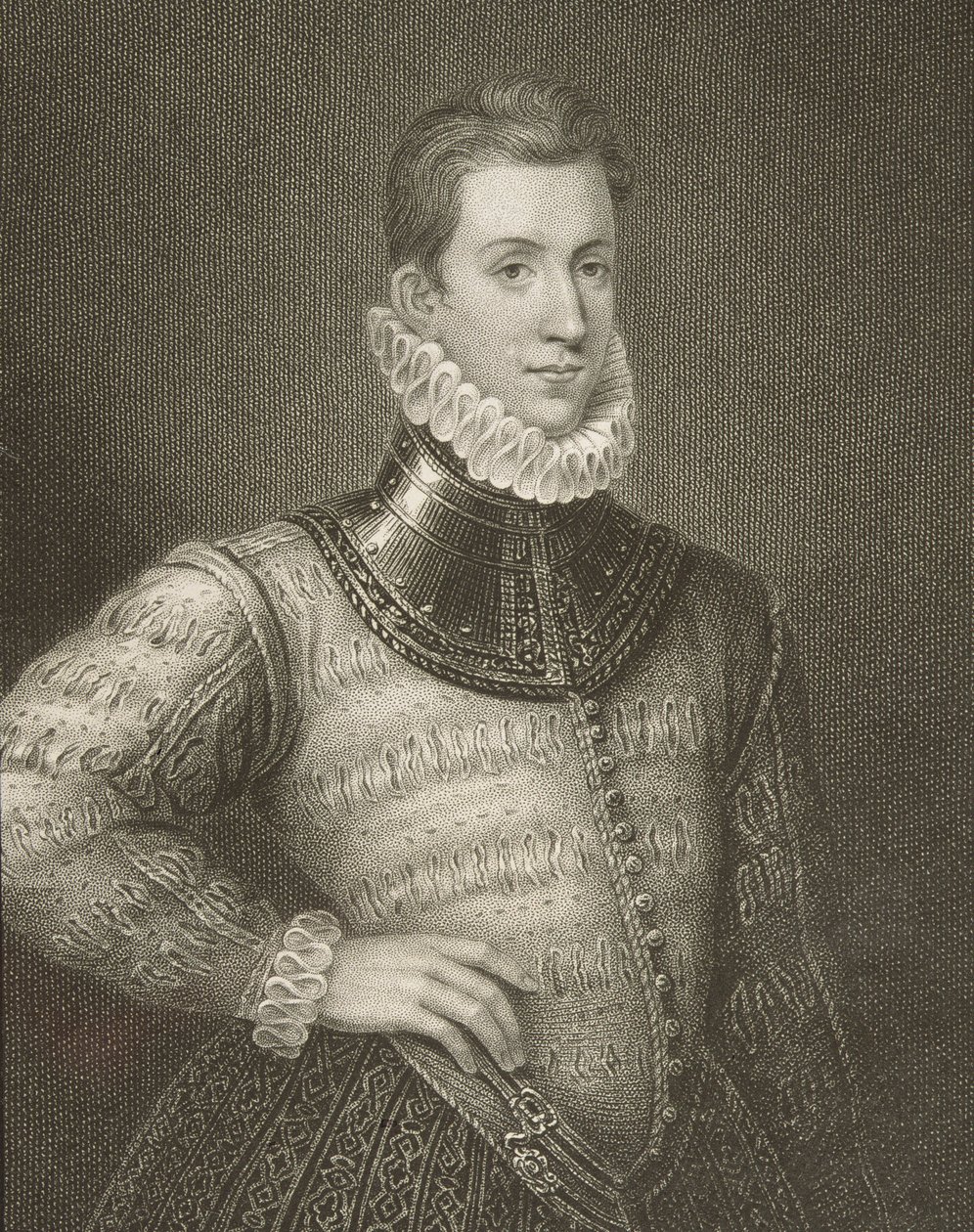 Portrett av Sir Philip Sidney (1554-1586) fra 'Lodge's British Portraits', 1823(Portrait of Sir Philip Sidney (1554-1586) from 'Lodge's British Portraits', 1823 )English School |