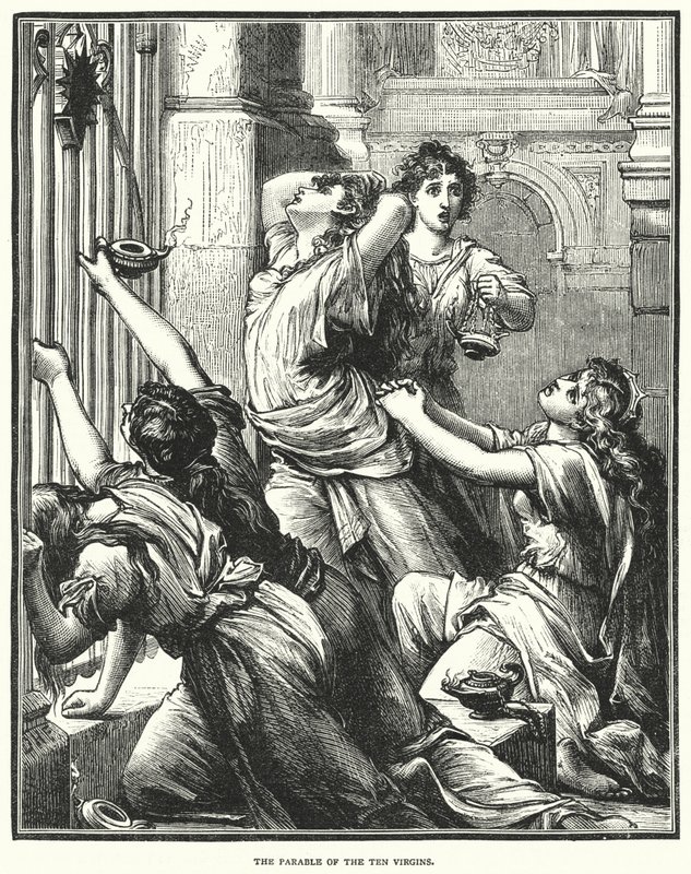 Lignelsen om de ti jomfruer (gravering)(The Parable of the Ten Virgins (engraving))English School |