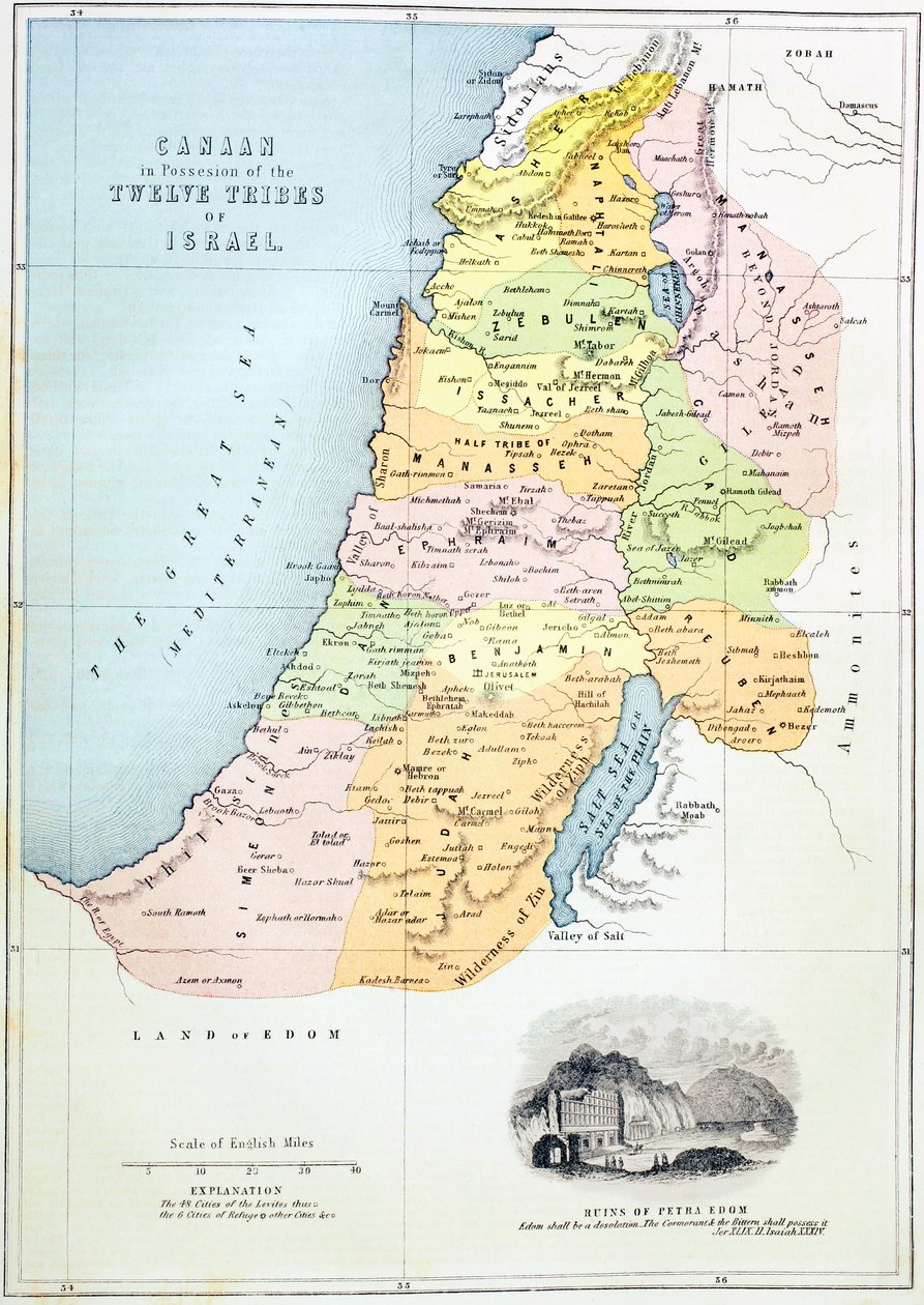 Kanaan slik det ble delt mellom Israels tolv stammer(Canaan as it was divided between the twelve tribes of Israel )English School |