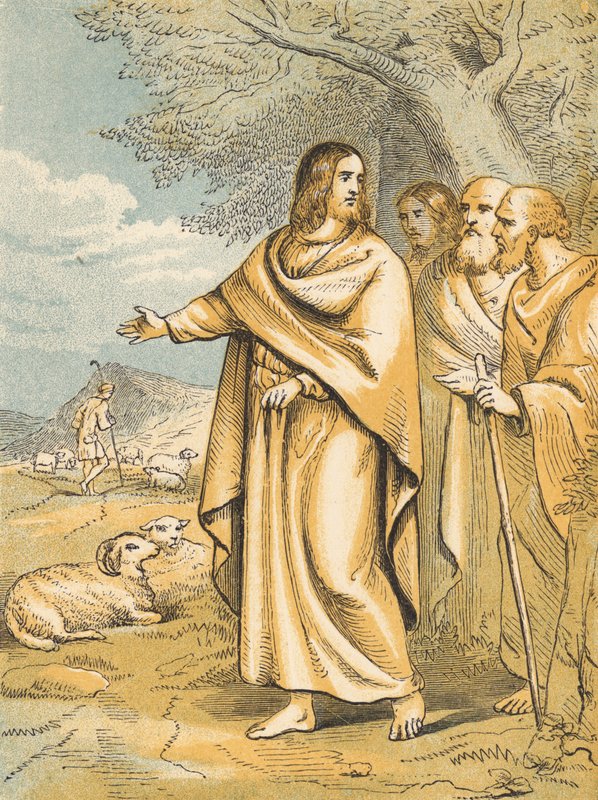 Jesus den gode hyrde (farget gravering)(Jesus the Good Shepherd (coloured engraving))English School |