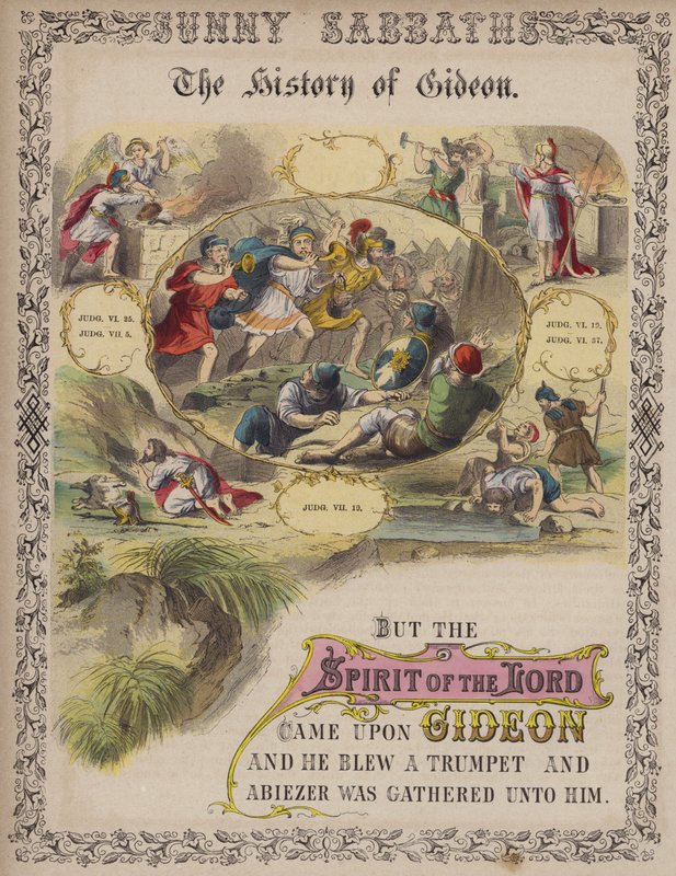 Gideons historie (farget gravering)(The history of Gideon (coloured engraving))English School |
