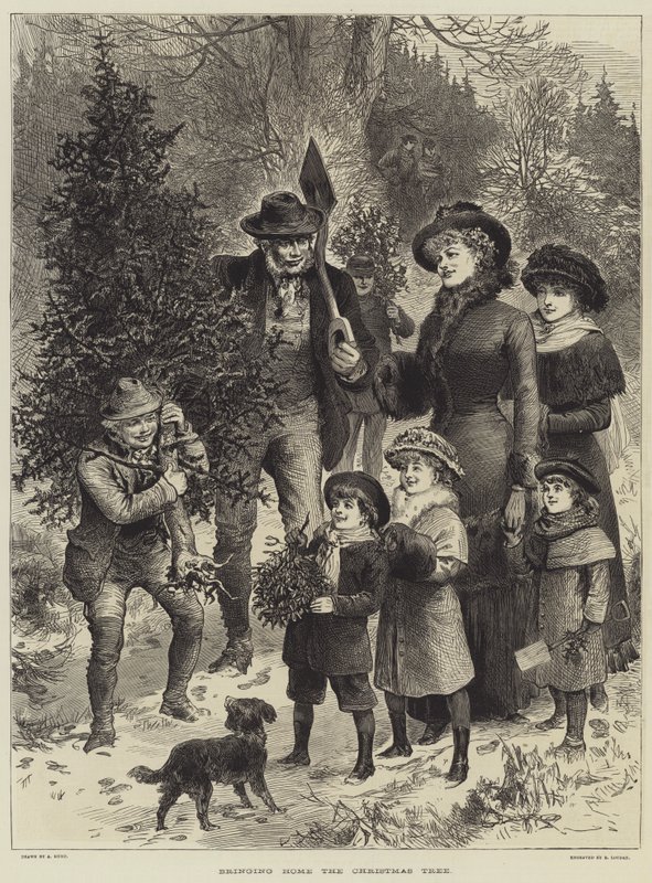 Bringing Home The Christmas Tree (gravering)(Bringing Home The Christmas Tree (engraving))English School |