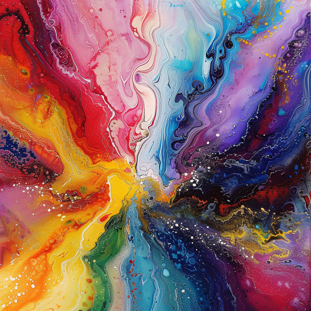 Abstrakt kunst med livlige akrylmalingsfarger på lerretstrykk for stilig veggdekorasjon. Forbedr rommet ditt med moderne kunstnerisk uttrykk.
