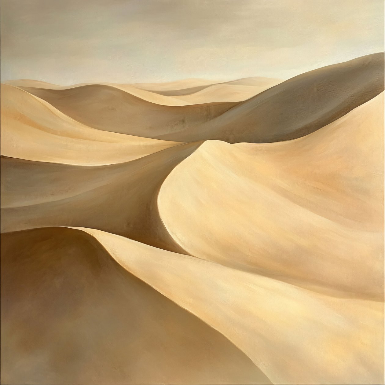 Et ørkenlandskap, gylne fargetoner og bølgende åser under en pastellhimmel, veggdekorasjon(A desert landscape, golden hues & rolling hills under a pastel sky, wall Home Decor)F. Abderrahim |