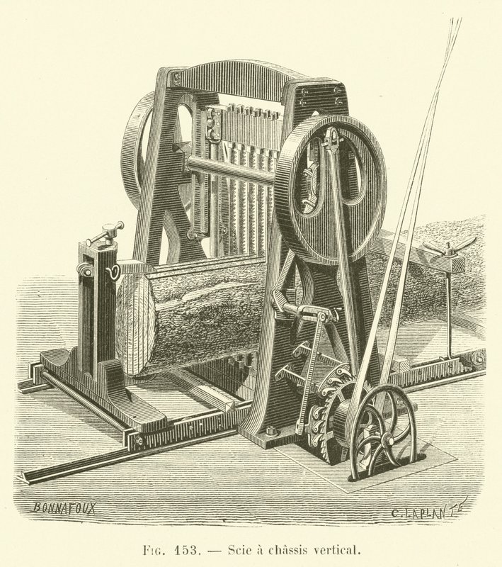 Scie et chassis vertikalt (gravering)(Scie a chassis vertical (engraving))French School |