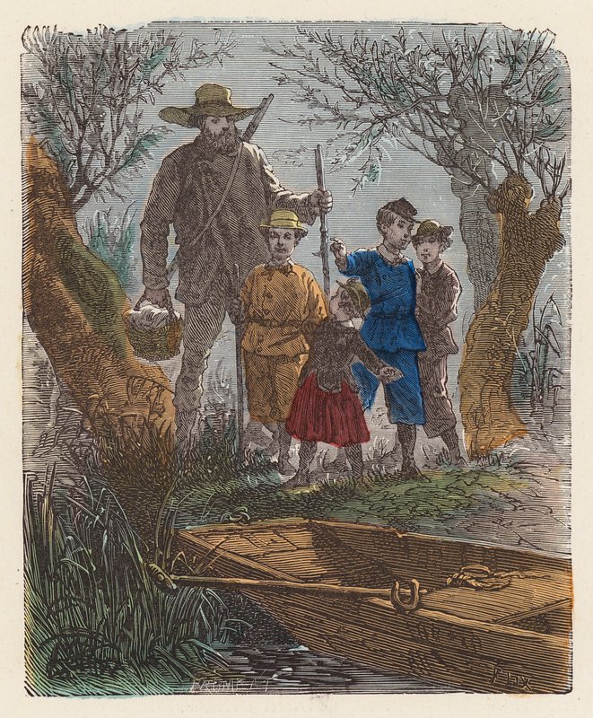 Fiske (farget gravering)(Going fishing (coloured engraving))French School |