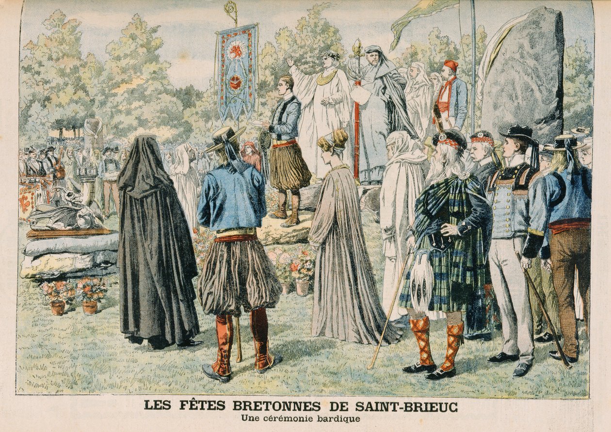 Bardic-seremoni i Saint-Brieuc, Bretagne, illustrasjon fra 'Le Petit Journal', 29. juli 1906(Bardic Ceremony at Saint-Brieuc, Brittany, illustration from 'Le Petit Journal', 29th July 1906 )French School |