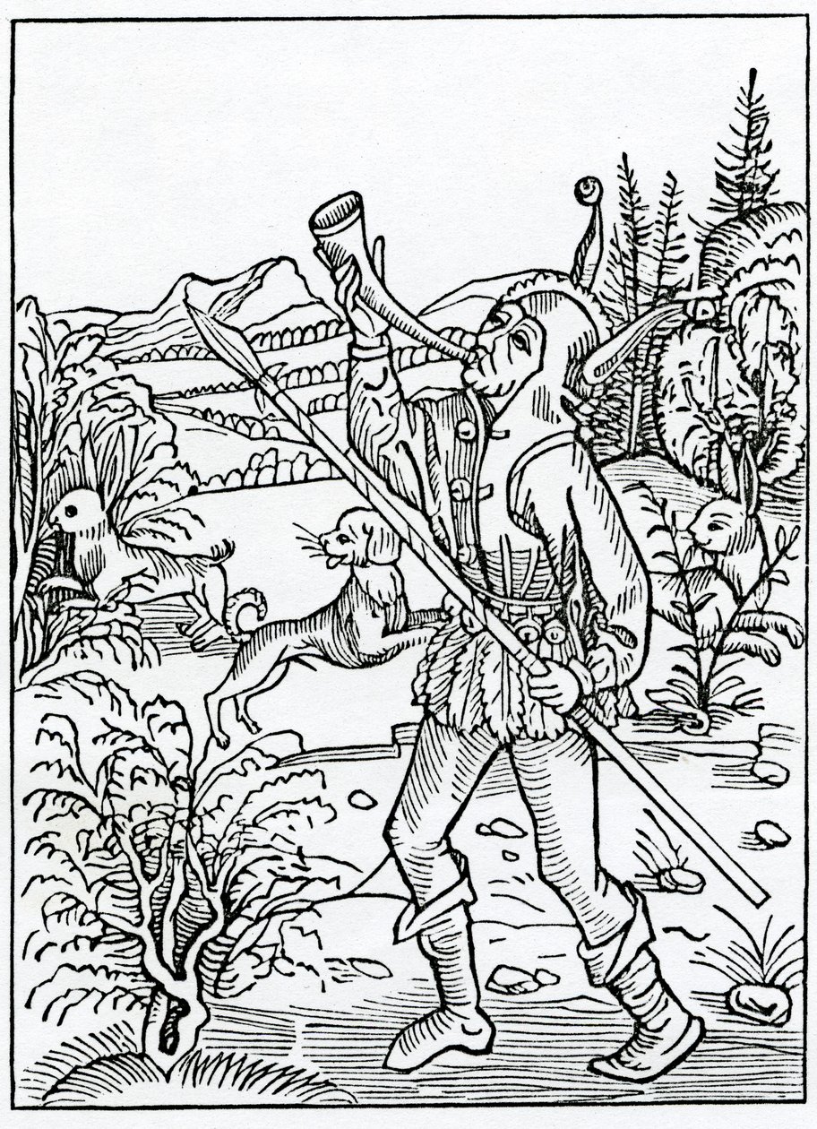 (Of hym that togyder wyll serve two maysters, illustration from Alexander Barclay's English translation of 'The Ship of Fools', from an edition published in 1874 )
