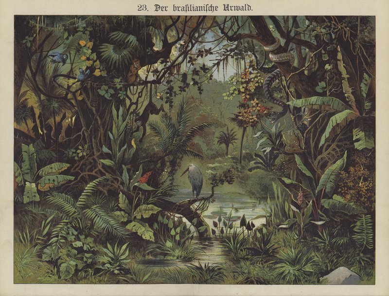 Brasiliansk regnskog (farge litho)(Brazilian rain forest (colour litho))German School |