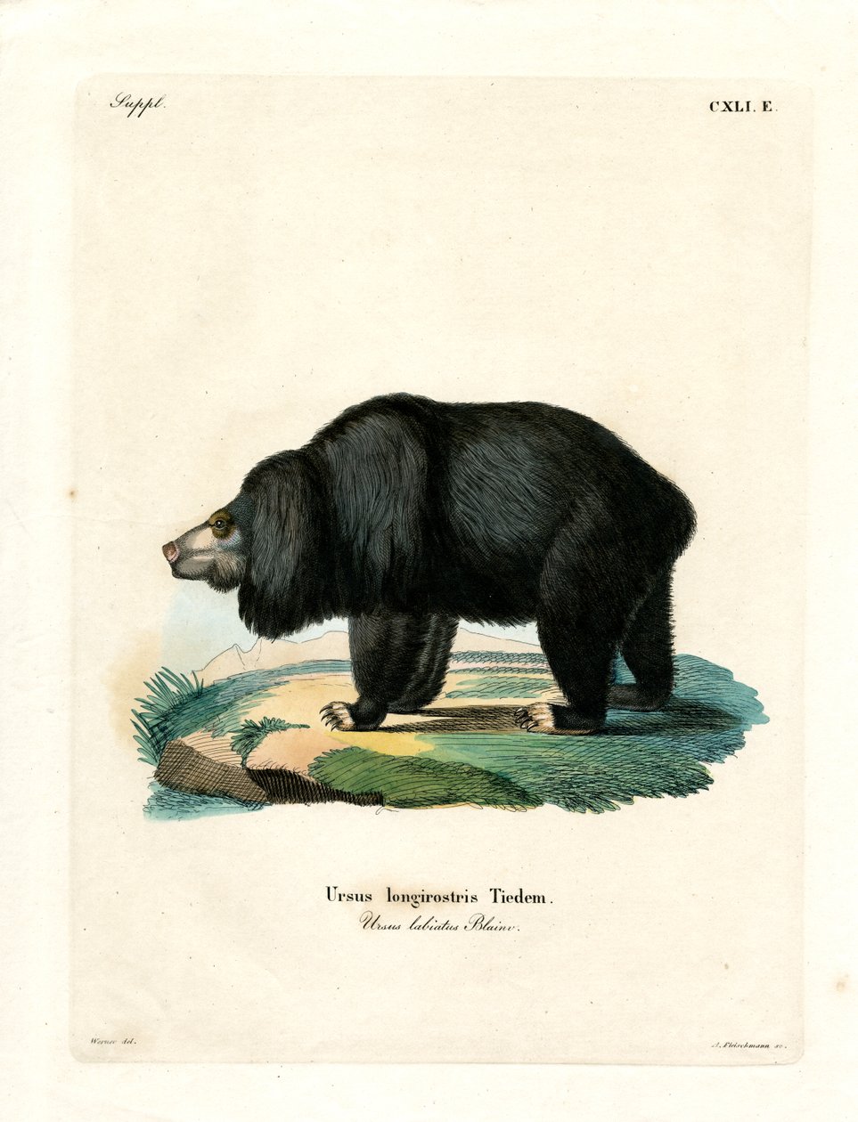 Sloth Bear (farget gravering)(Sloth Bear (coloured engraving))German School |