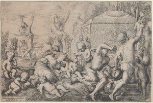 Bacchus møter Ariadne på Naxos Bacchanal på Andros Tilbedelse av Venus av putti bachchanal Bacchanal møtte Silenus navlestreng Bacchanal met altaar, faun og Silenus Allegori om forfengelighet Bacchanal med alter, faun og Silenus Putti foran en statue av Venus, etter Titian, 1636. Bacchus møter Ariadne på Naxos Allegori med putti
