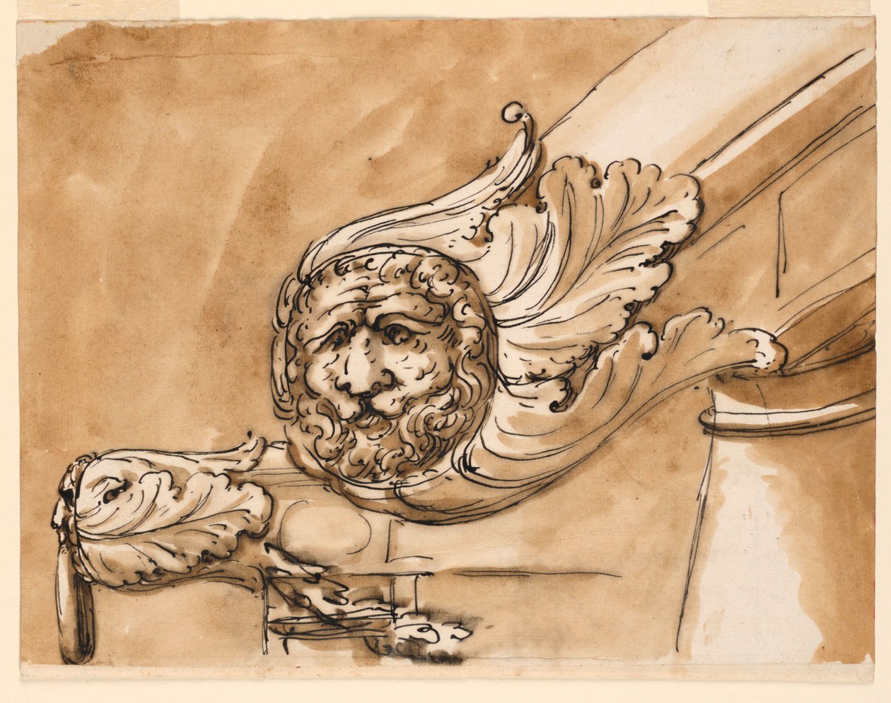 Udatert · Pen and brown ink, brush and brown wash, red ink on off-white laid paper, lined