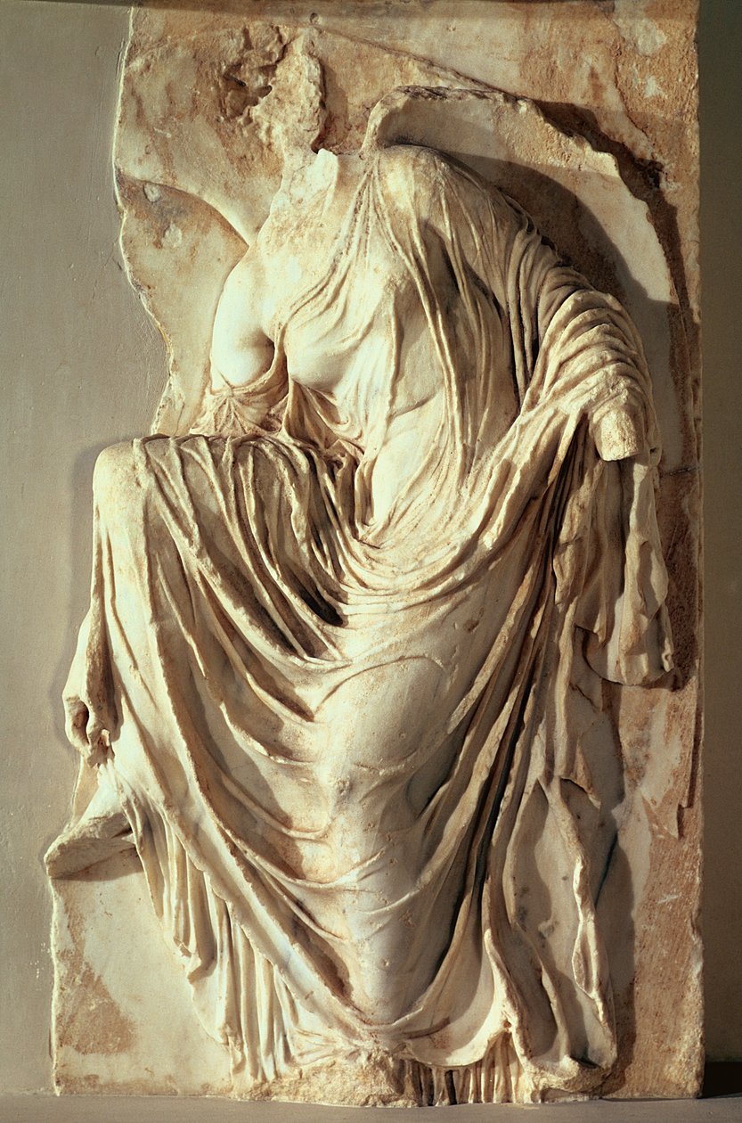 Athena Nike justerer sandalen sin, ca. 420-420 f.Kr. (marmor)(Athena Nike adjusting her sandal, c.420-420 BC (marble))Greek |