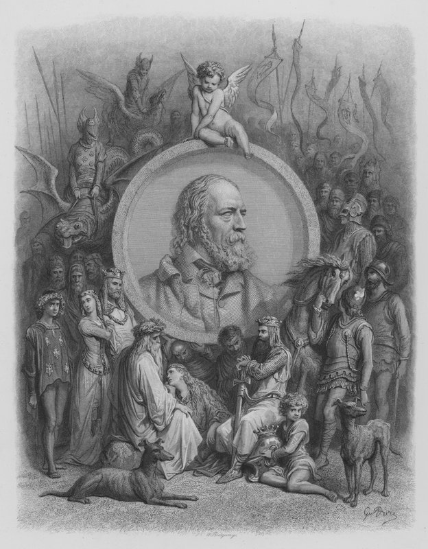 Frontispice, Portrait of Tennyson og Characters from the Idylls(Frontispiece, Portrait of Tennyson and Characters from the Idylls )Gustave after Dore |