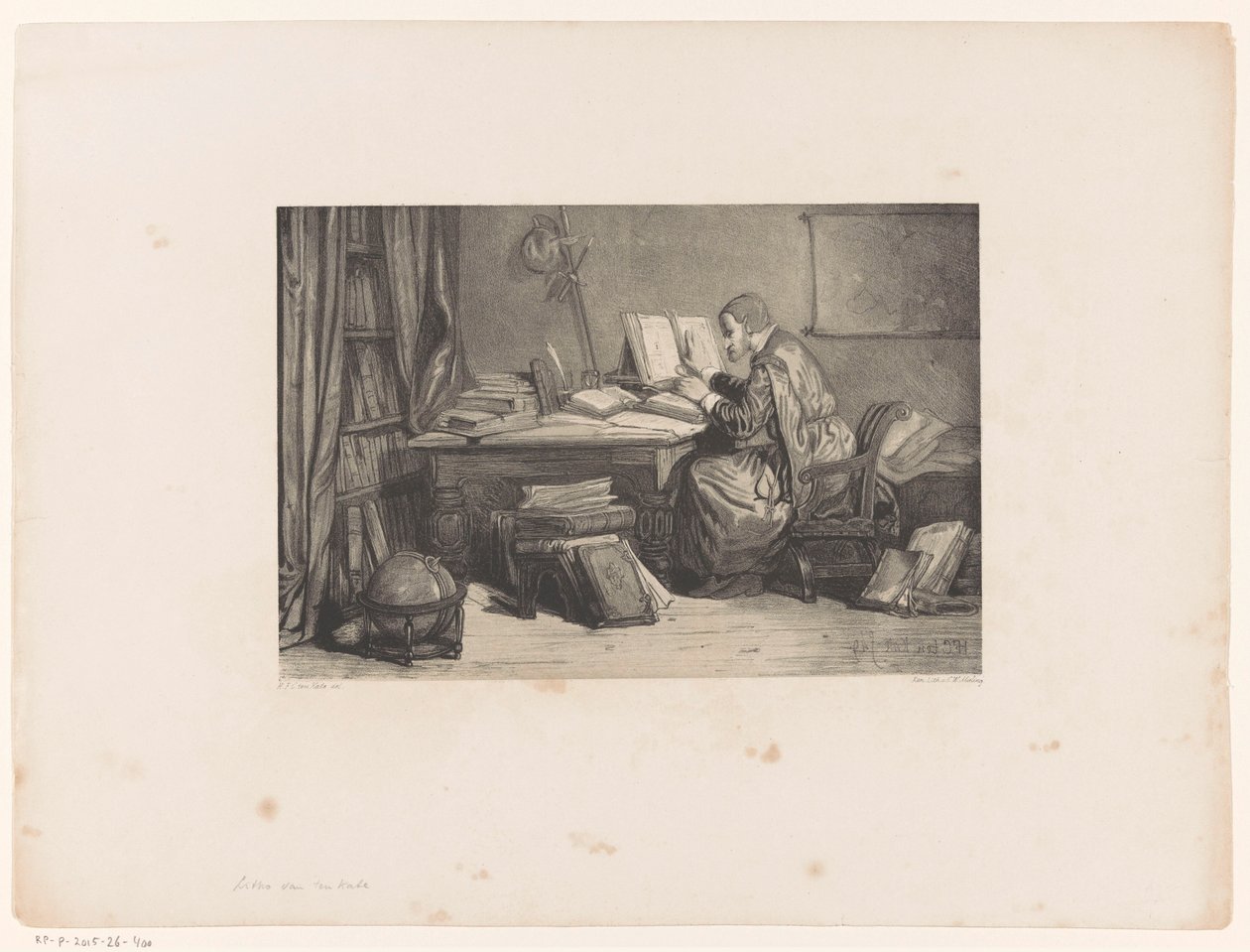 Forsker i et studierom(Geleerde in een studeervertrek)Herman Frederik Carel ten Kate(print maker),Steendrukkerij C.W. Mieling(printer) |
