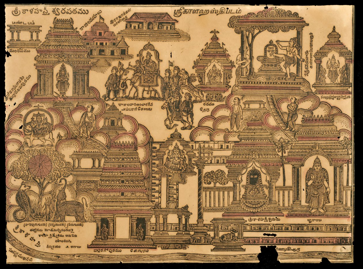 Templer (treblokktrykk)(Temples (woodblock print))Indian School |