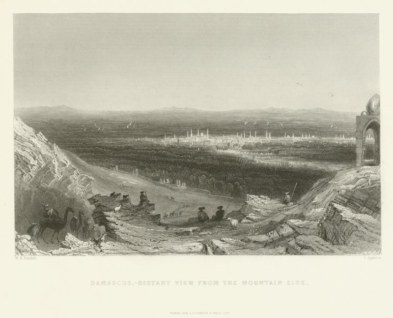 Damaskus - Fjernsyn fra fjellsiden, 1837(Damascus - Distant View from the Mountain Side, 1837 )J. Appleton |