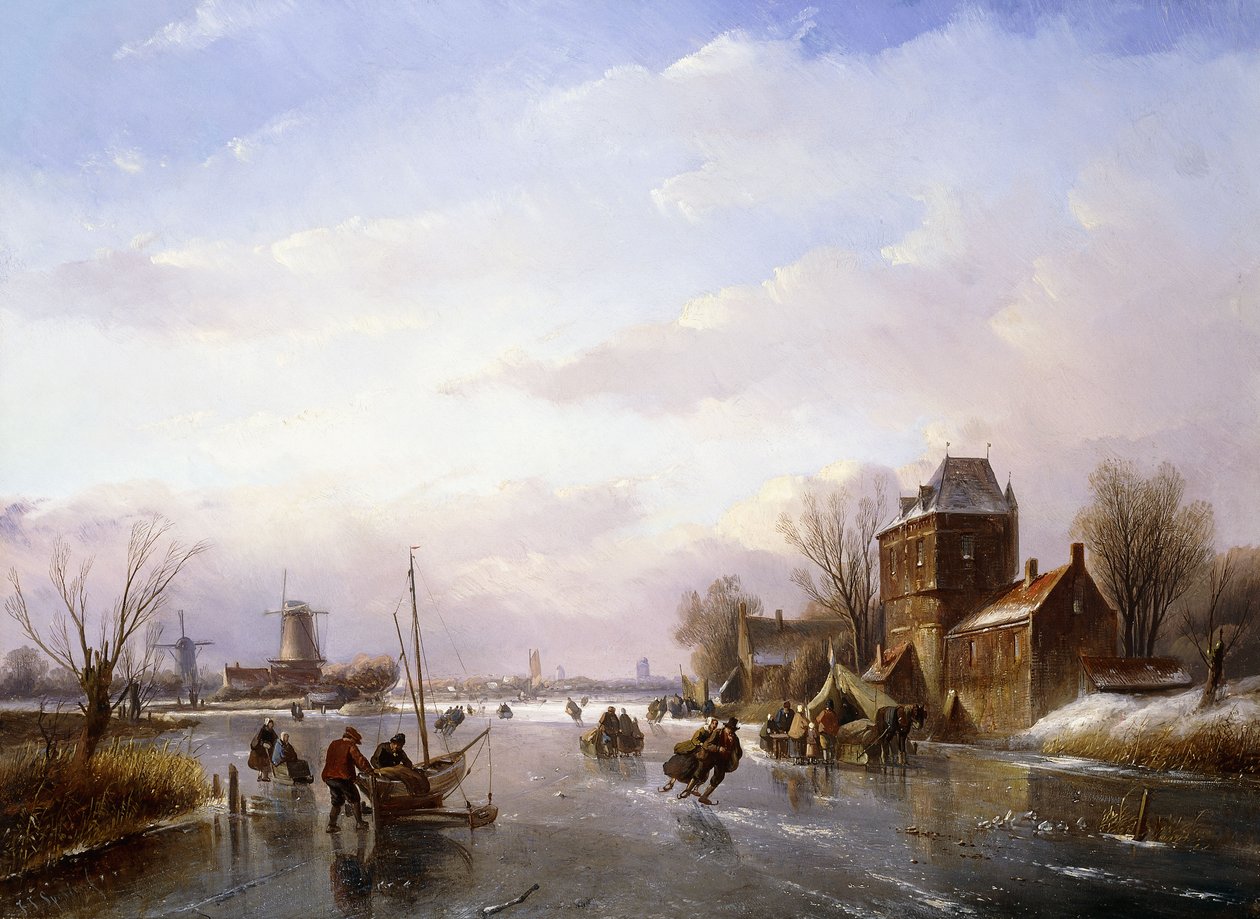 Skatere i et frossent landskap,(Skaters in a frozen Landscape, )Jan Jacob Spohler |