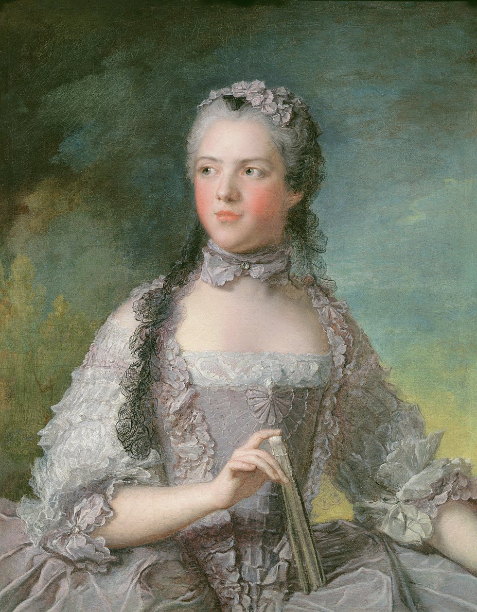 Portrett av Adelaide de France (1732-1800) med en vifte, 1749(Portrait of Adelaide de France (1732-1800) with a Fan, 1749 )Jean-Marc Nattier |