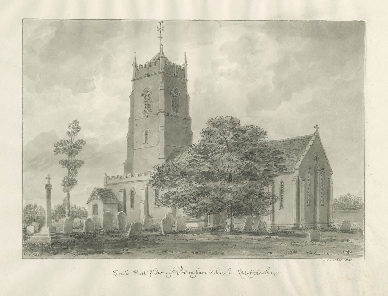 Pattingham Church: sepia-tegning(Pattingham Church: sepia drawing)John Buckler |