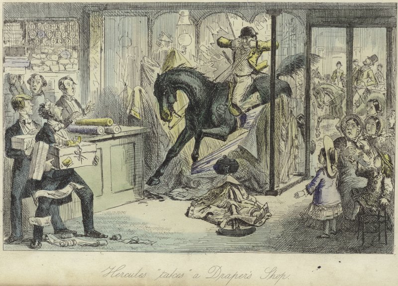 Hercules tar en Draper's Shop(Hercules takes a Draper's Shop )John Leech |