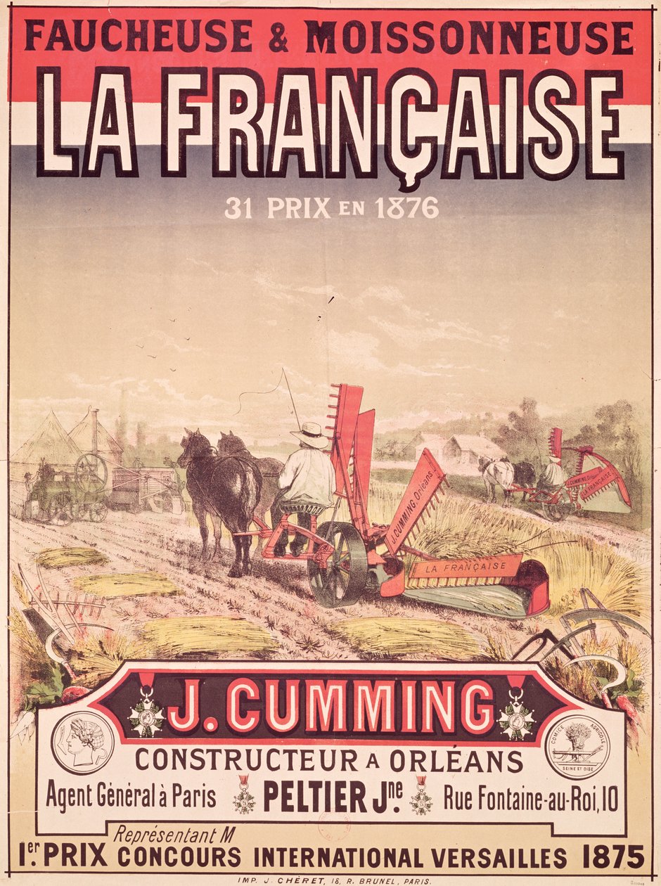 Plakatreklame 'La Francaise, Reaper and Mower', laget av J. Cumming fra Orleans, 1876(Poster advertising 'La Francaise, Reaper and Mower', made by J. Cumming of Orleans, 1876 )Jules Cheret |