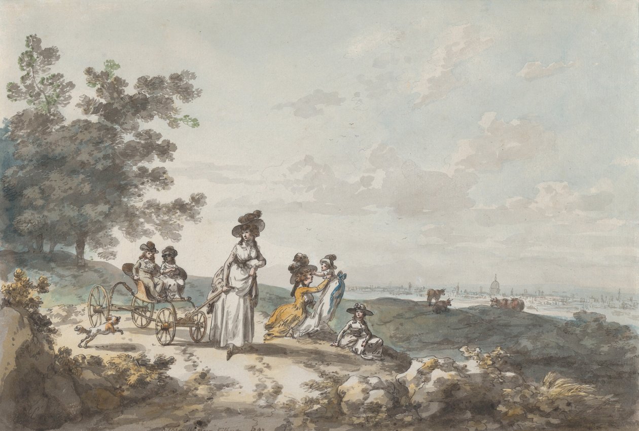 View of London with St. Paul's in the Distance: Woman and Children with a Baby Carriage, 1787 (penn, blekk og wc)(View of London with St. Paul’s in the Distance: Woman and Children with a Baby Carriage, 1787 (pen, ink and wc))Julius Caesar Ibbetson |