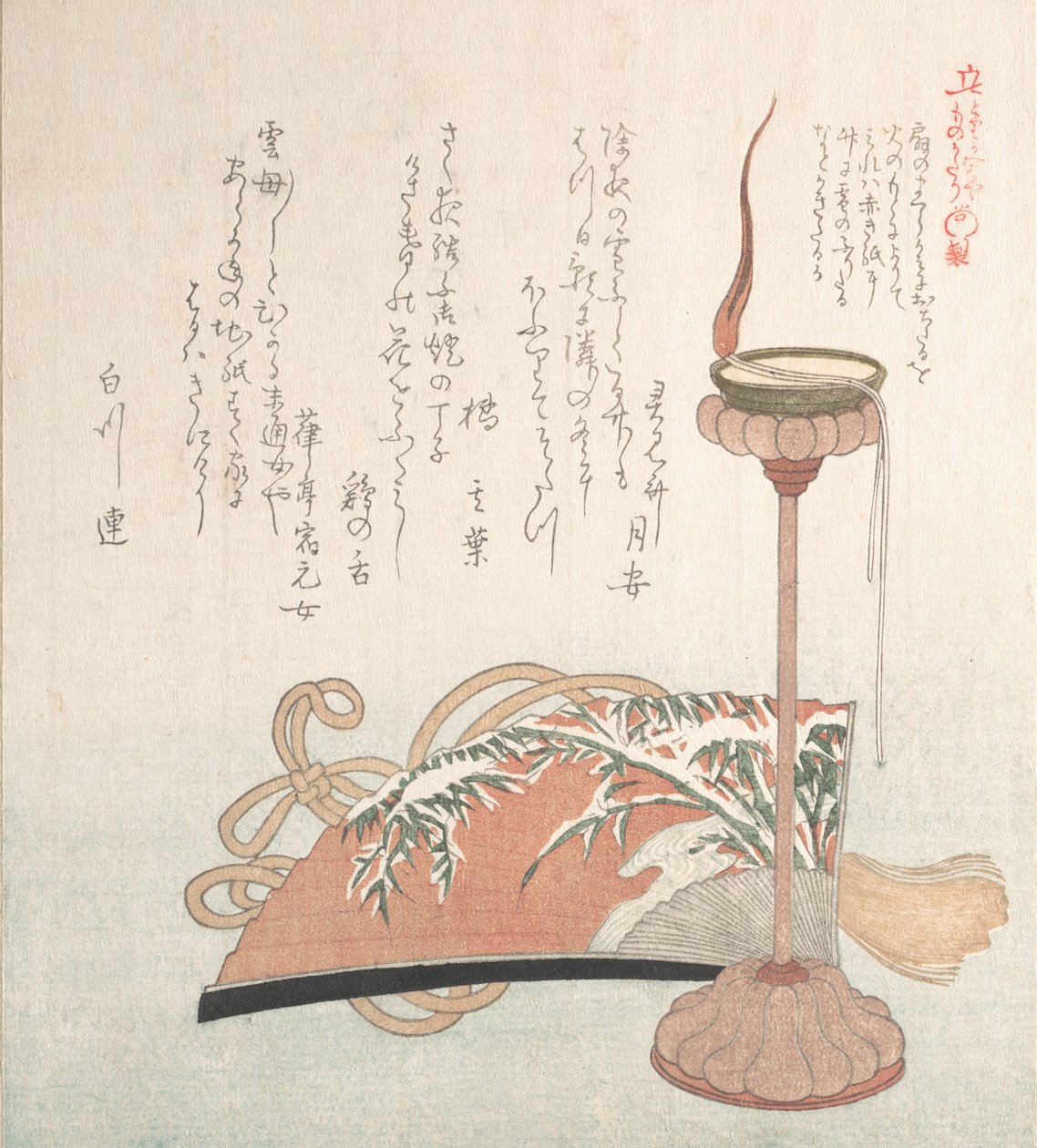 Lys-stativ og vifte, 1800-tallet.(Candle-Stand and Fan, 19th century. )Kubo Shunman |