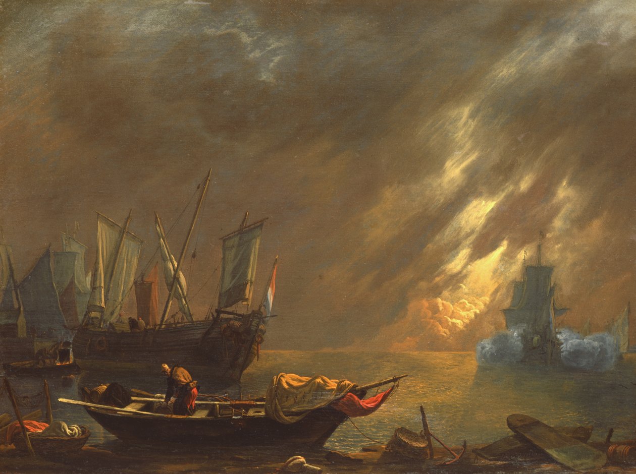Utsikt over en havn ved solnedgang(View of a Harbour at Sunset )Lieve Verschuier |