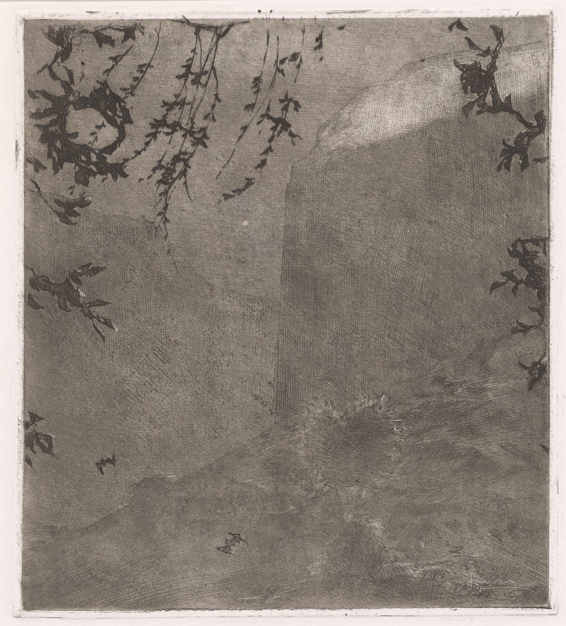 etching in black with monotype wiping on wove paper