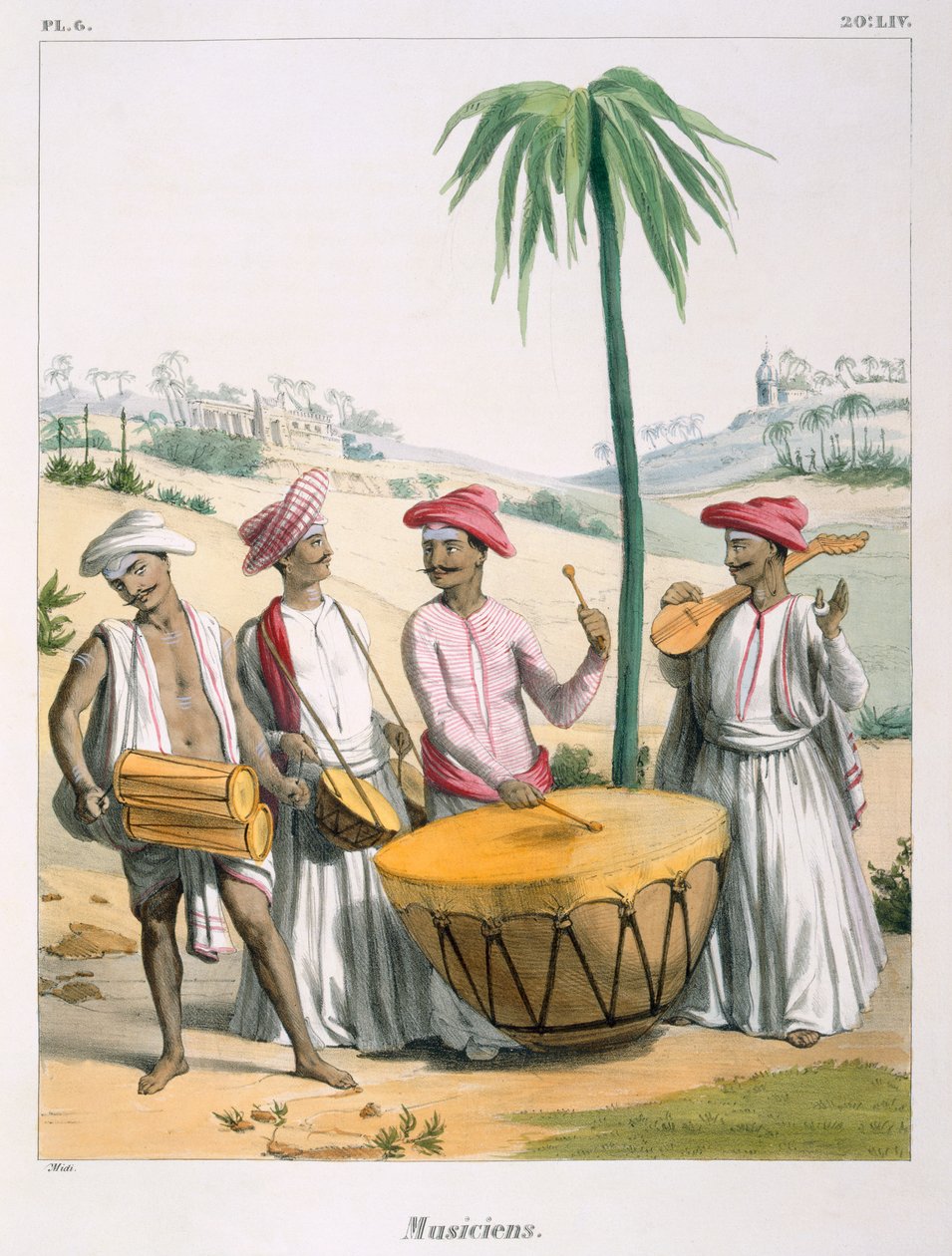 Musikere med en stor kjeletromme, 1827-35(Musicians with a large Kettle Drum, 1827-35 )M.E. Burnouf |
