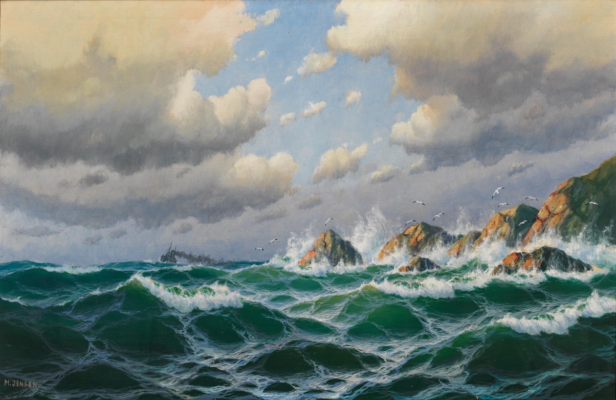 Dampbåt utenfor en stormfull kyst(German: Dampfer vor stürmischer Küste)Max Jensen |