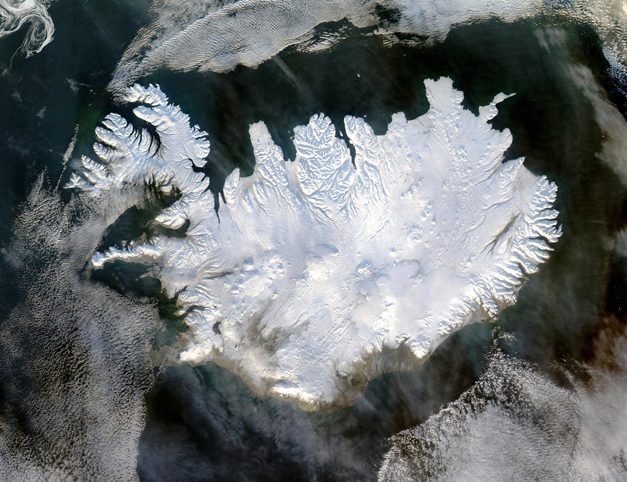 Satellittbilde av Island 28. januar 2004 som viser det dekket av et teppe av snø og is som skjuler de permanente isbreene og iskappene som eksisterer året rundt. Kreditt NASA. Vitenskapsvinter(Satellite image of Iceland on 28 January 2004 showing it covered in a blanket of snow and ice which is obscuring the permanent glaciers and icecaps that exist year-round. Credit NASA. Science Winter)National Aeronautics and Space Administration National Aeronautics and Space Administration |