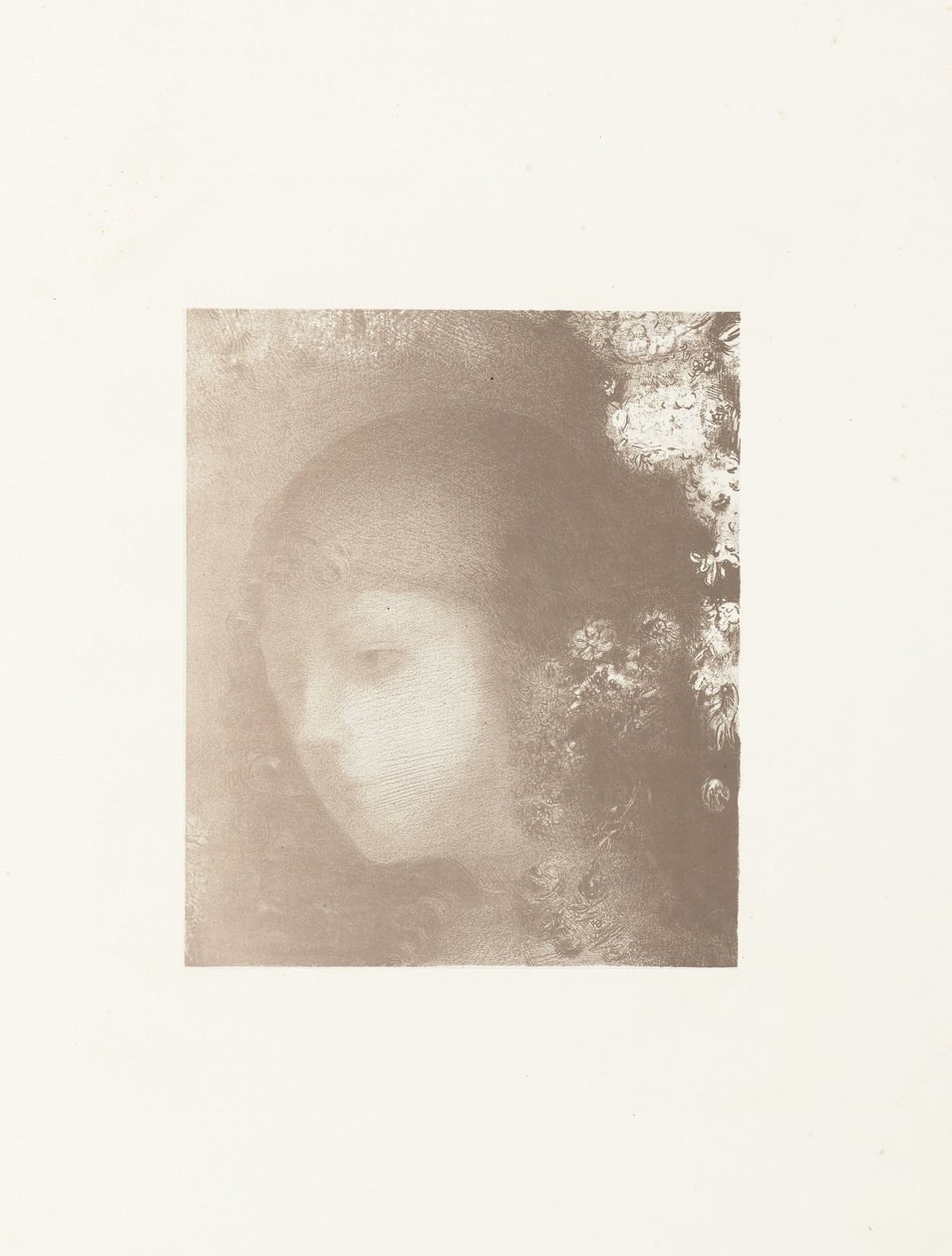 Kinderhoofd met bloemen Barnehode med blomster(Kinderhoofd met bloemen Tête d'enfant avec fleurs)Odilon Redon(print maker),E. Duchatel(printer),Lemercier and Cie.(printer) |