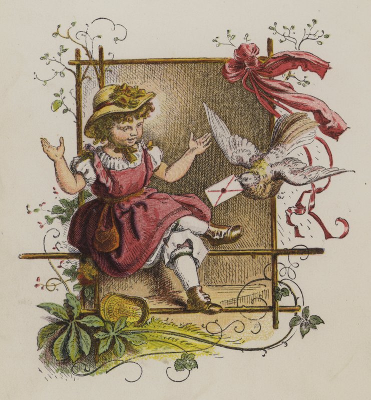 Fugl leverer et brev til en liten jente(Bird delivering a letter to a little girl)Oskar Pletsch |