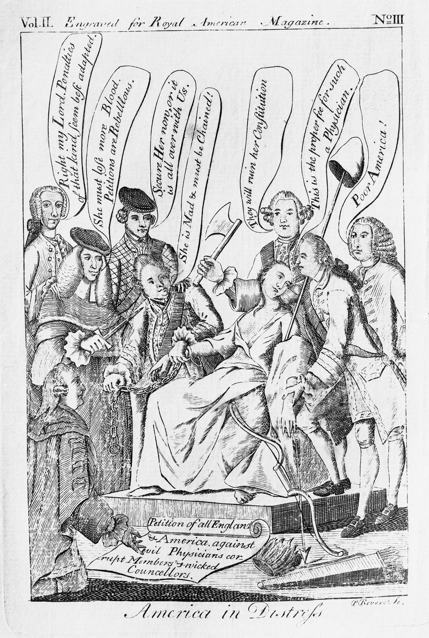 America in Distress, trykt i 'Royal American Magazine' utgitt mars 1775(America in Distress, printed in 'Royal American Magazine' published March 1775 )Paul Revere |